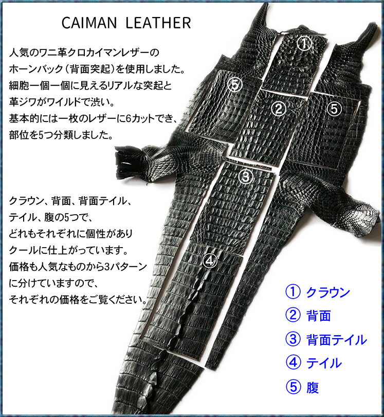本革が大好きなファンにはきっと喜んでいただけるでしょう! 人気のワニ革クロカイマンレザーのホーンバック(背面突起)を使用しました。
