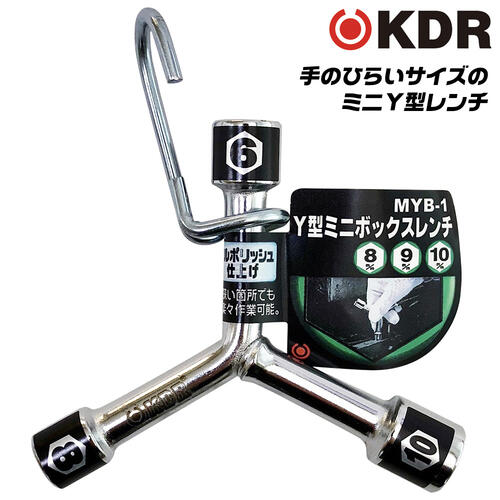 KDR ミニY型ボックスレンチ 8x9x10 フルポリッシュ仕上げ 脱着式 ハンガーフック付 整備工具 レンチ メンテナンスツール 自動車 バイク 機械 設備 8mm 9mm 10mm 3サイズ対応 ミラーポリッシュ MYB-1 古寺製作所 ベストツール