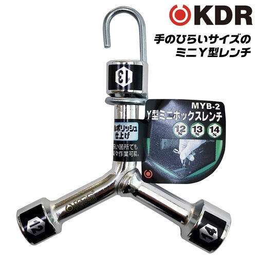 KDR ミニY型ボックスレンチ 12x13x14 フルポリッシュ仕上げ 脱着式 ハンガーフック付 整備工具 レンチ メンテナンスツール 自動車 バイク 機械 設備 12mm 13mm 14mm 3サイズ対応 ミラーポリッシュ MYB-2 古寺製作所 ベストツール