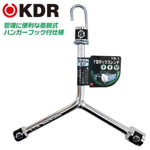 KDR Y型ボックスレンチ 8x9x10 フルポリッシュ仕上げ 脱着式 ハンガーフック付 整備工具 レンチ メンテナンスツール 自動車 バイク 機械 設備 8mm 9mm 10mm 3サイズ対応 ミラーポリッシュ YB-1 古寺製作所 ベストツール