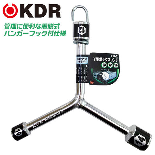KDR Y型ボックスレンチ 10x12x14 フルポリッシュ仕上げ 脱着式 ハンガーフック付 整備工具 レンチ メンテナンスツール 自動車 バイク 機械 設備 10mm 12mm 14mm 3サイズ対応 ミラーポリッシュ YB-2 古寺製作所 ベストツール