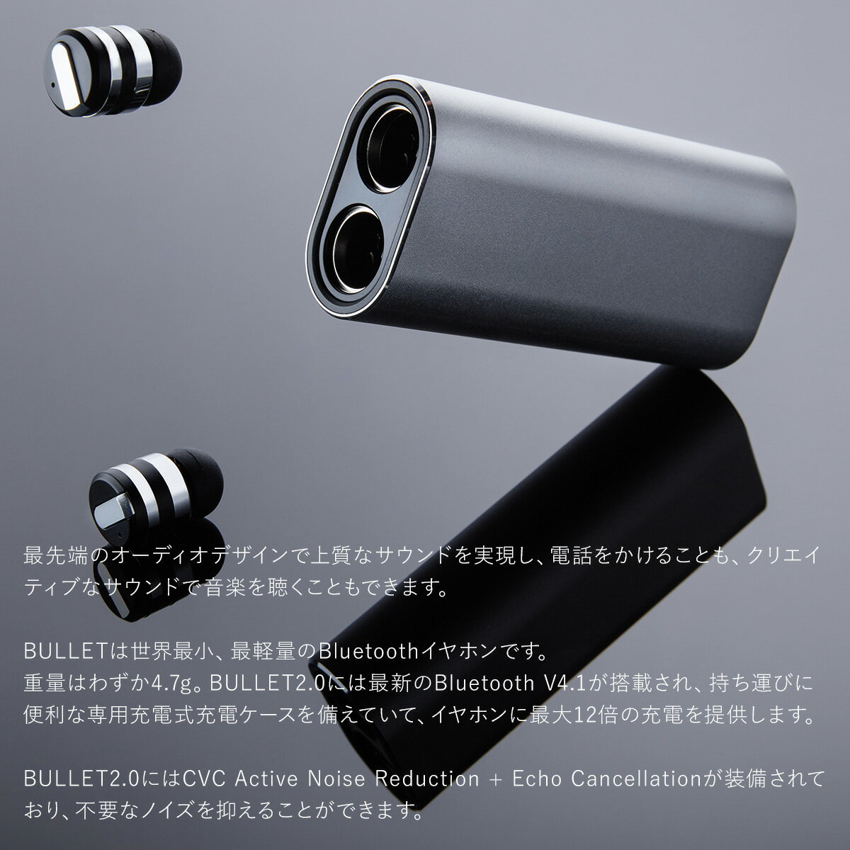 BULLET2.0には最新のBluetooth V4.1が搭載され、持ち運びに便利な専用充電式充電ケースを備えていて、イヤホンに最大12倍の充電を提供します。