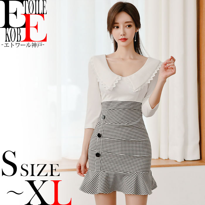 ワンピース セクシー シースルー 胸元 七分袖 7分袖 袖あり 大人 上品 カジュアル ワンピ セクシーワンピース 韓国 服 フリル レディース キャバワンピ スカート ショート ミニ おしゃれ かわいい 可愛い チェック 白 黒 30代 夜 きれいめ 大人可愛い 春夏 春服 夏服